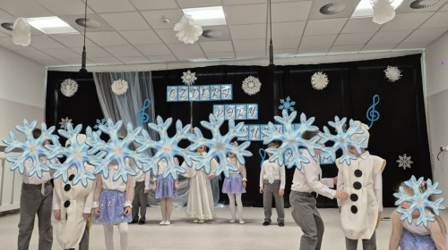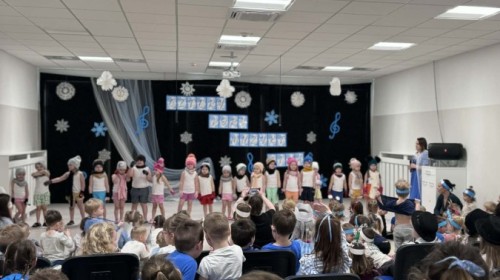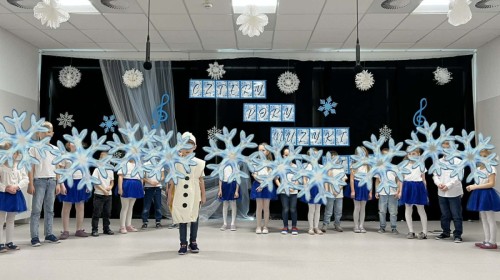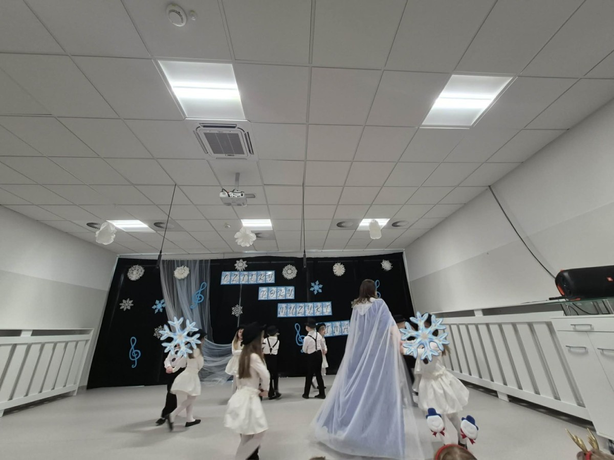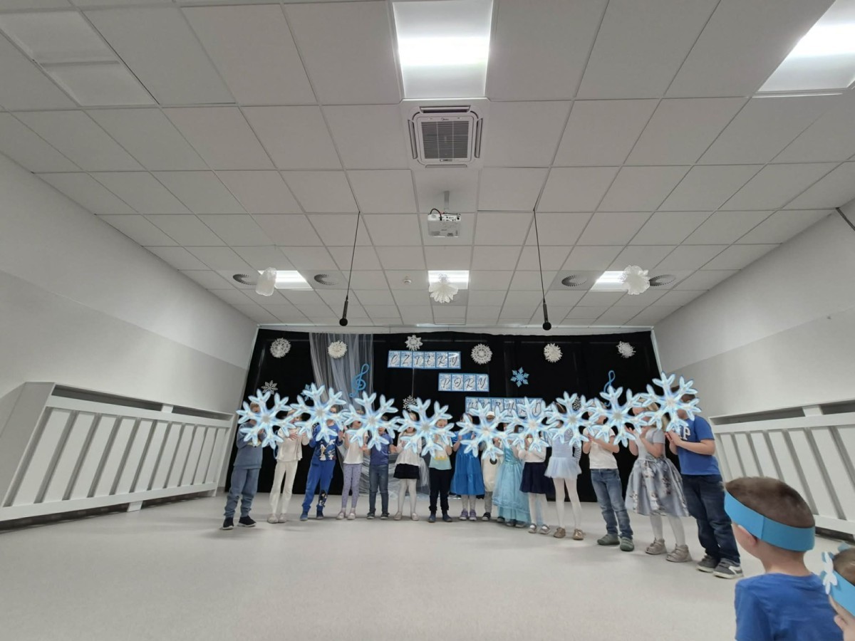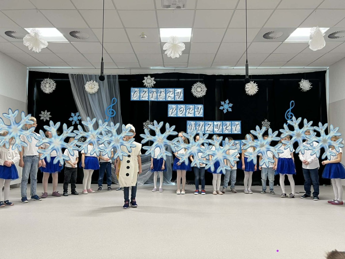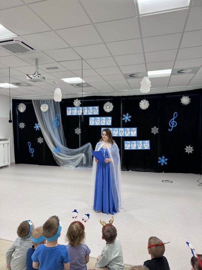 Tego dnia sala zamieniła się w prawdziwą, zimową krainę. Na scenie pojawiły się śnieżynki, wesołe bałwanki, a nawet odważne morsy, które rozgrzały publiczność swoim występem!