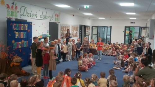 Dzieci z grup przedszkolnych zaprezentowały piękne występy – śpiewały jesienne piosenki, tańczyły, a także grały na instrumentach muzycznych. Występy pełne były kolorów, energii i radości.