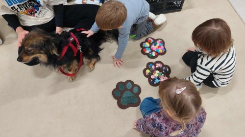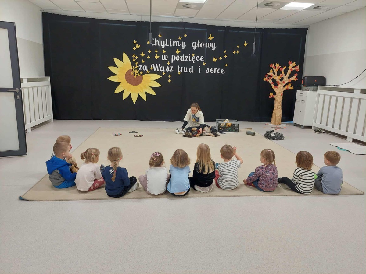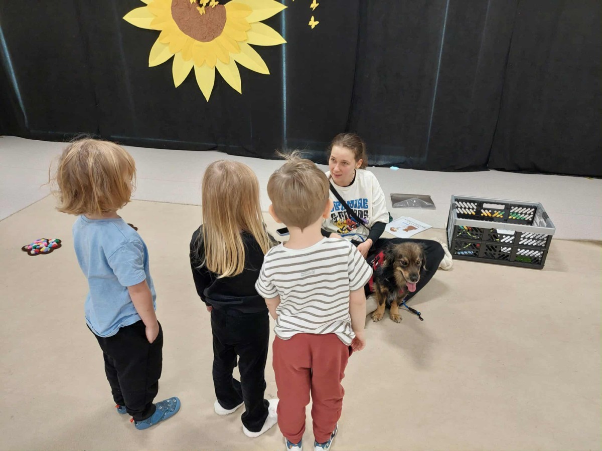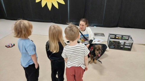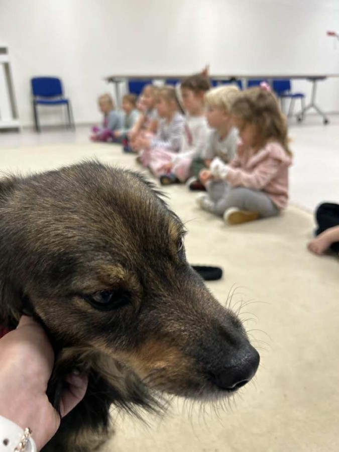Podczas spotkania dzieci miały okazję dowiedzieć się, jak należy opiekować się psem, jak rozpoznawać jego emocje i jak bezpiecznie się z nim bawić. Nie zabrakło też wspólnych zabaw, głaskania i przytulania naszego czworonożnego gościa.