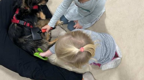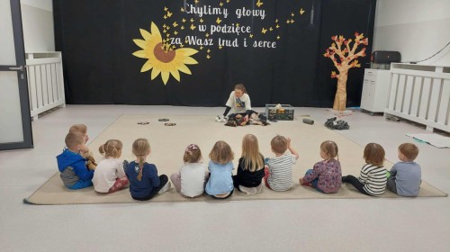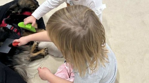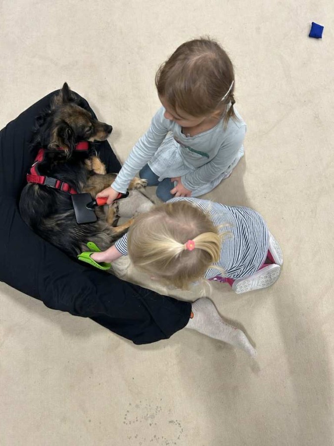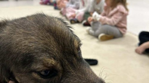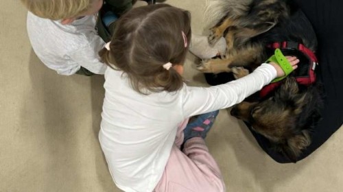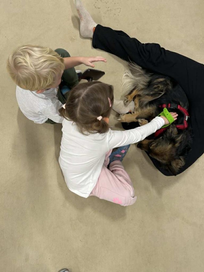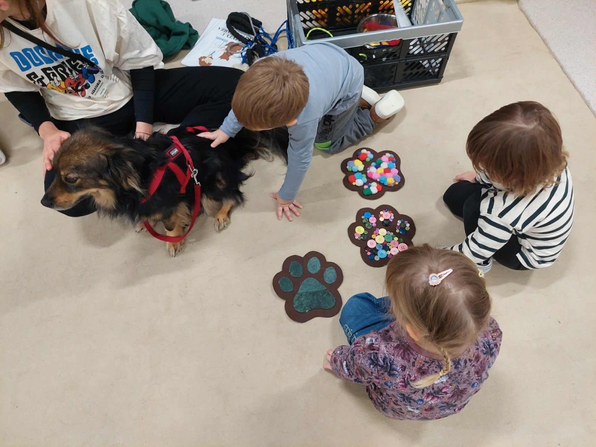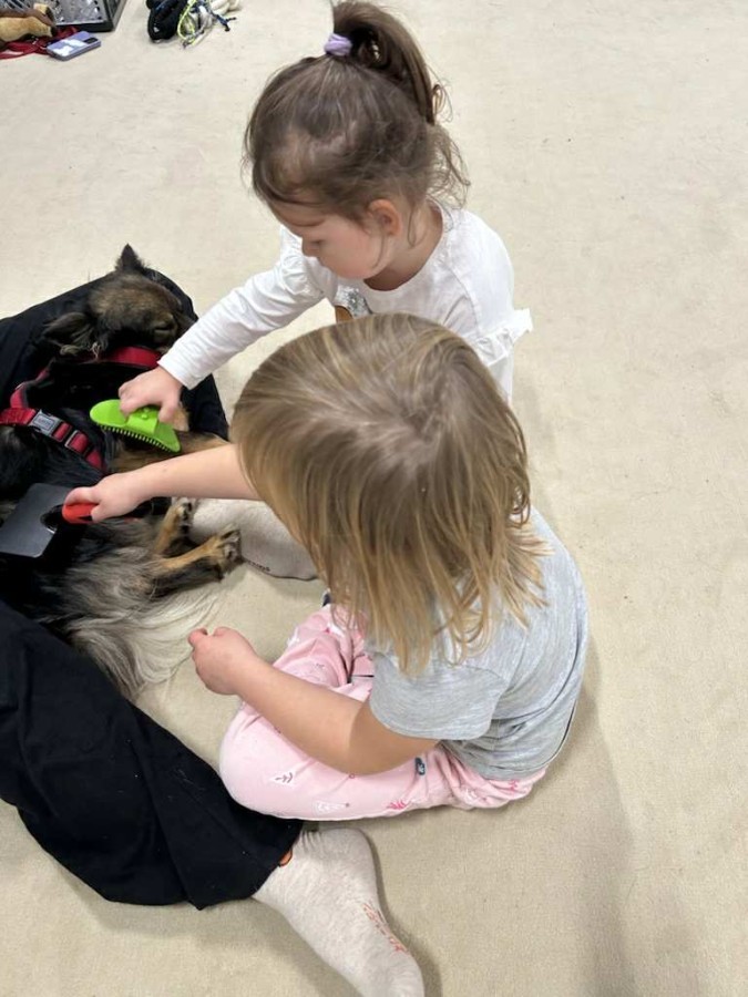Podczas spotkania dzieci miały okazję dowiedzieć się, jak należy opiekować się psem, jak rozpoznawać jego emocje i jak bezpiecznie się z nim bawić. Nie zabrakło też wspólnych zabaw, głaskania i przytulania naszego czworonożnego gościa.