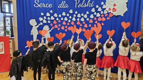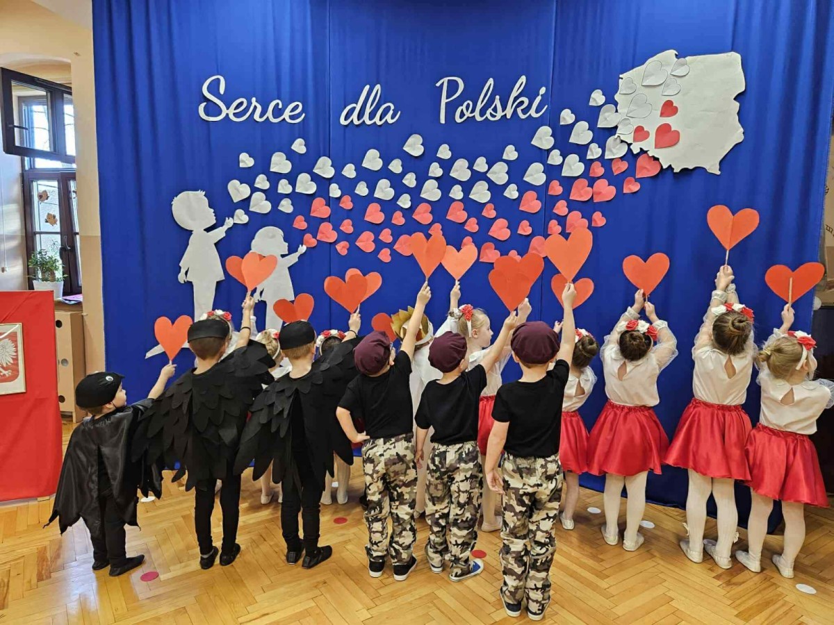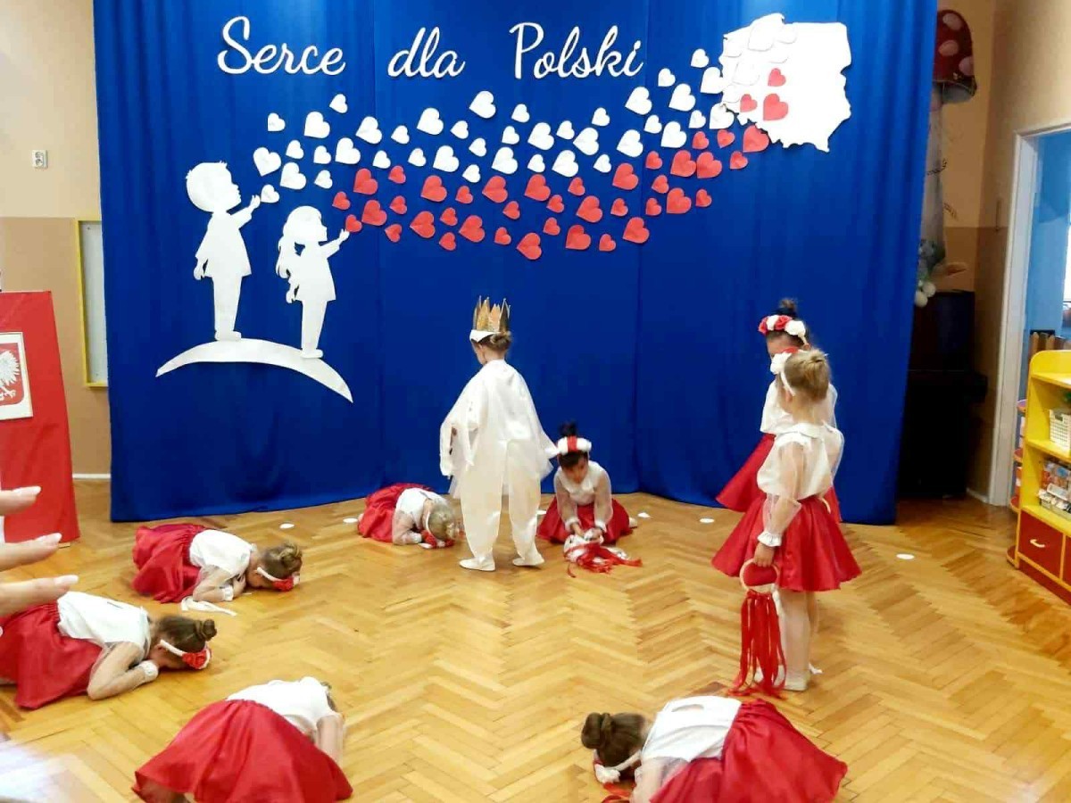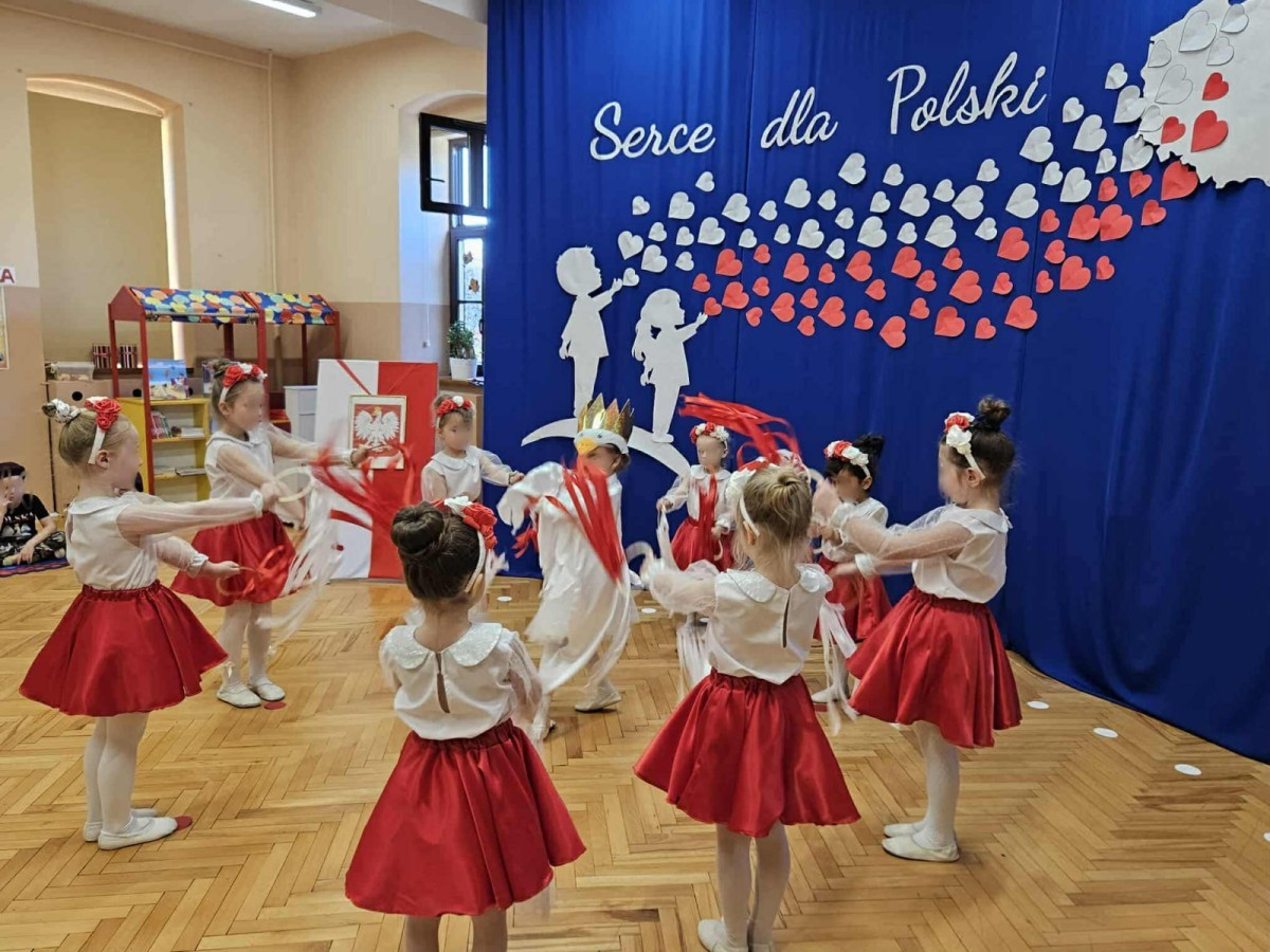 Dzieci z zaangażowaniem włączyły się w obchody, prezentując postawę pełną szacunku i miłości do Ojczyzny. Cała społeczność przedszkolna wspólnie odśpiewała hymn narodowy w ramach ogólnopolskiej akcji „Szkoła do hymnu”, tworząc podniosłą i wzruszającą atmosferę.