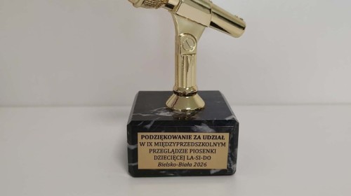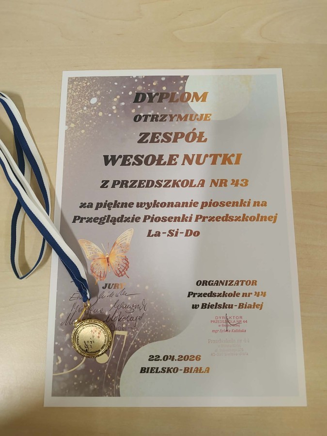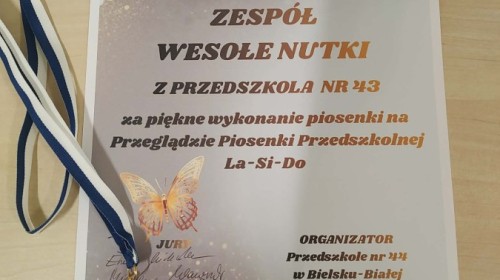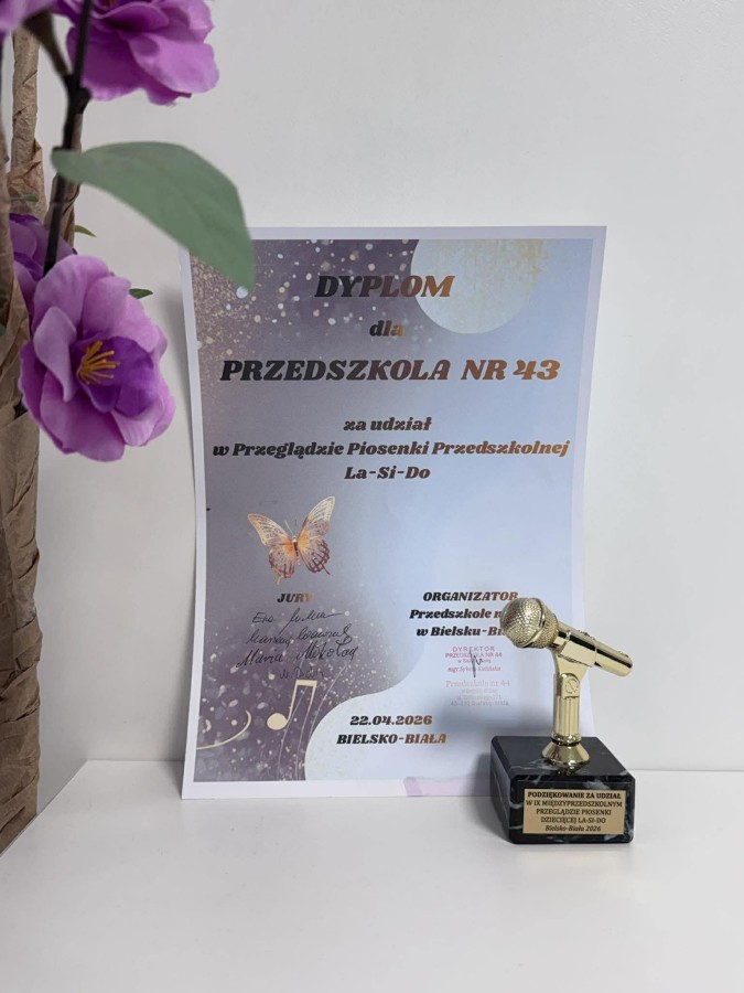 Z ogromną radością informujemy, że dzieci z Grupy VIII, tworzące zespół „Wesołe Nutki”, wzięły udział w IX Międzyprzedszkolnym Przeglądzie Piosenki Przedszkolnej „La - Si - Do”. Wydarzenie zostało zorganizowane przez Przedszkole nr 44 w Bielsku-Białej i zgromadziło wielu młodych, utalentowanych wykonawców z okolicznych placówek.