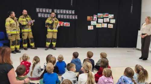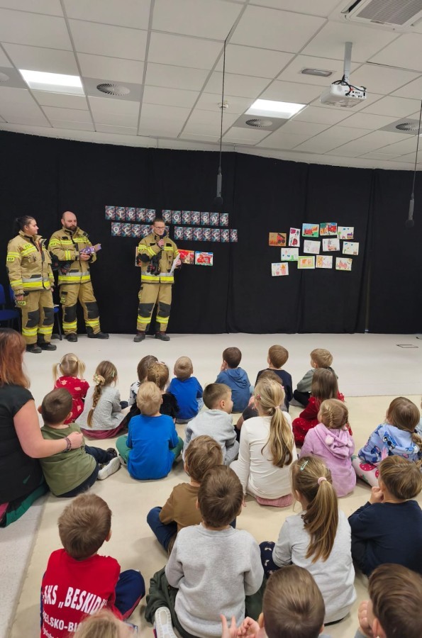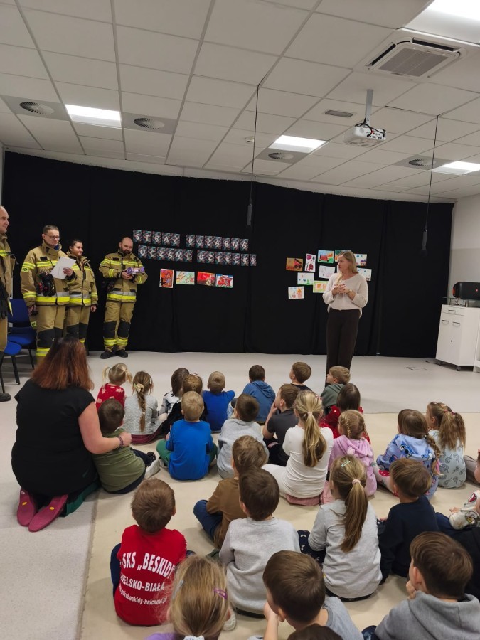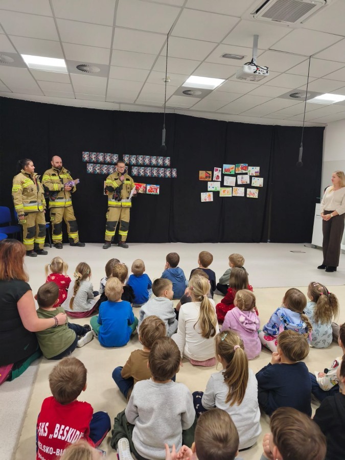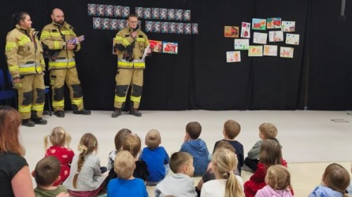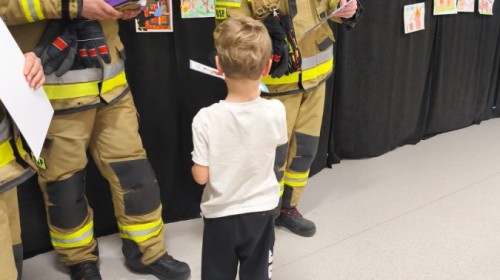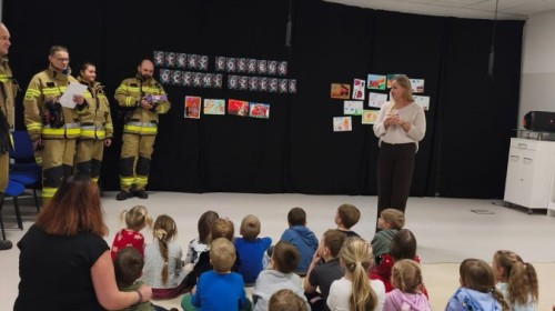 W poniedziałek, 17 listopada, do naszego Przedszkola przyjechali Strażacy z Ochotniczej Straży Pożarnej w Hałcnowie, aby ogłosić wyniki Konkursu plastycznego "Straż Pożarna oczami dziecka":