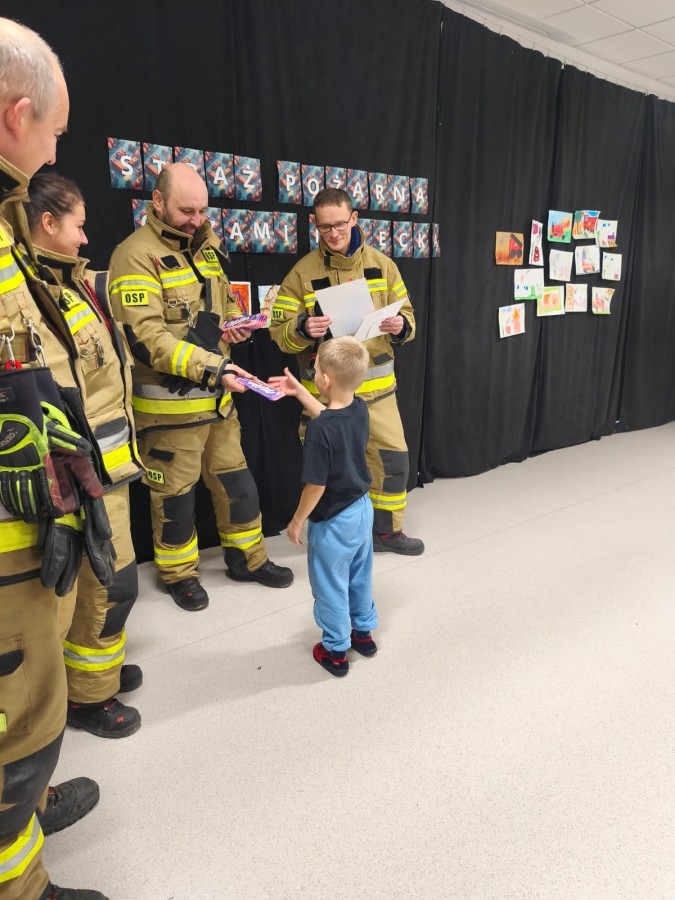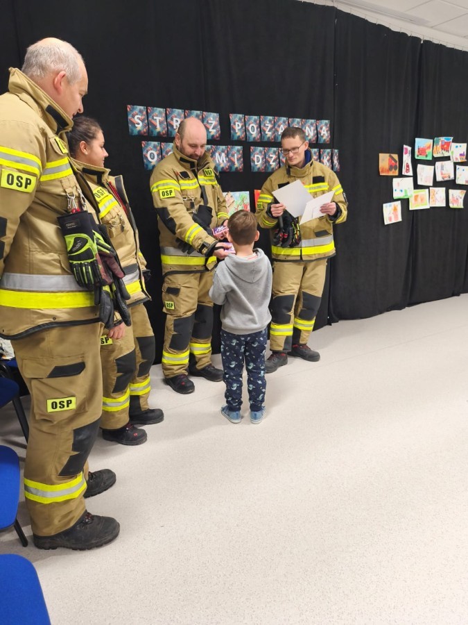 Dziękujemy Strażakom z OSP Hałcnów za zorganizowanie i przeprowadzenie konkursu oraz wizytę w naszym przedszkolu i osobiste wręczenie nagród.