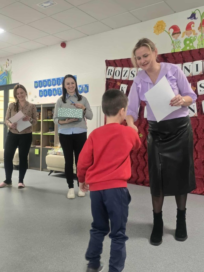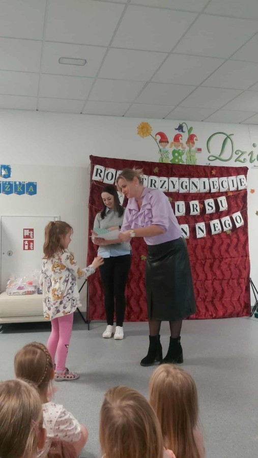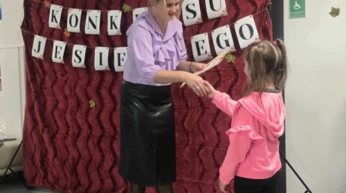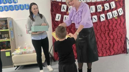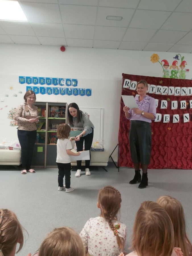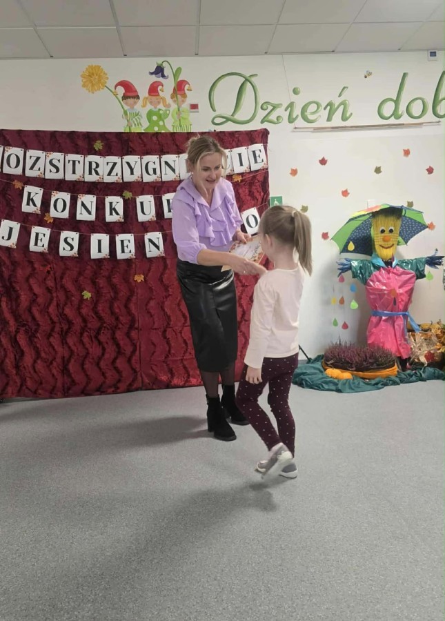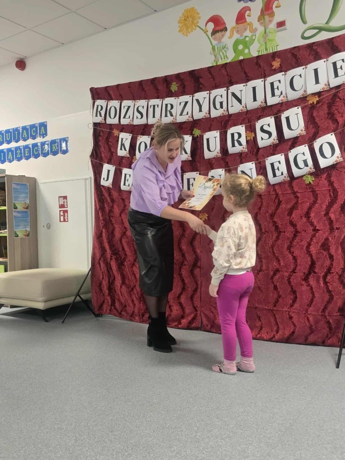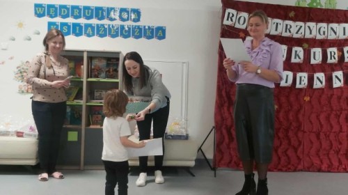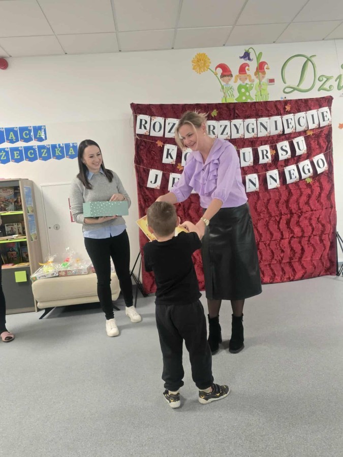 We wtorek w naszym przedszkolu odbyło się rozstrzygnięcie konkursu jesiennego o tematyce ,,Zwierzę z jesiennych liści''. Spośród 50 prac jurorzy postanowili wytypować po 3 miejsca w dwóch kategoriach wiekowych oraz 4 wyróżnienia. Wszyscy uczestnicy konkursu otrzymali dyplomy oraz drobne upominki. Nagrody zostały zakupione z budżetu Przedszkola nr 43 oraz ze wsparcia Rady Osiedla Hałcnów.