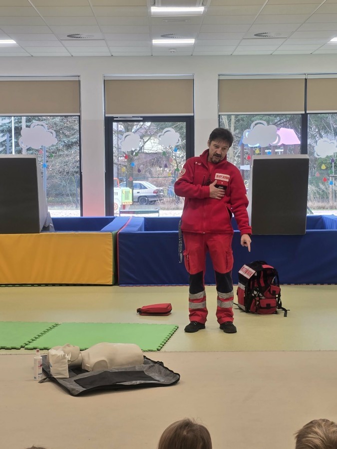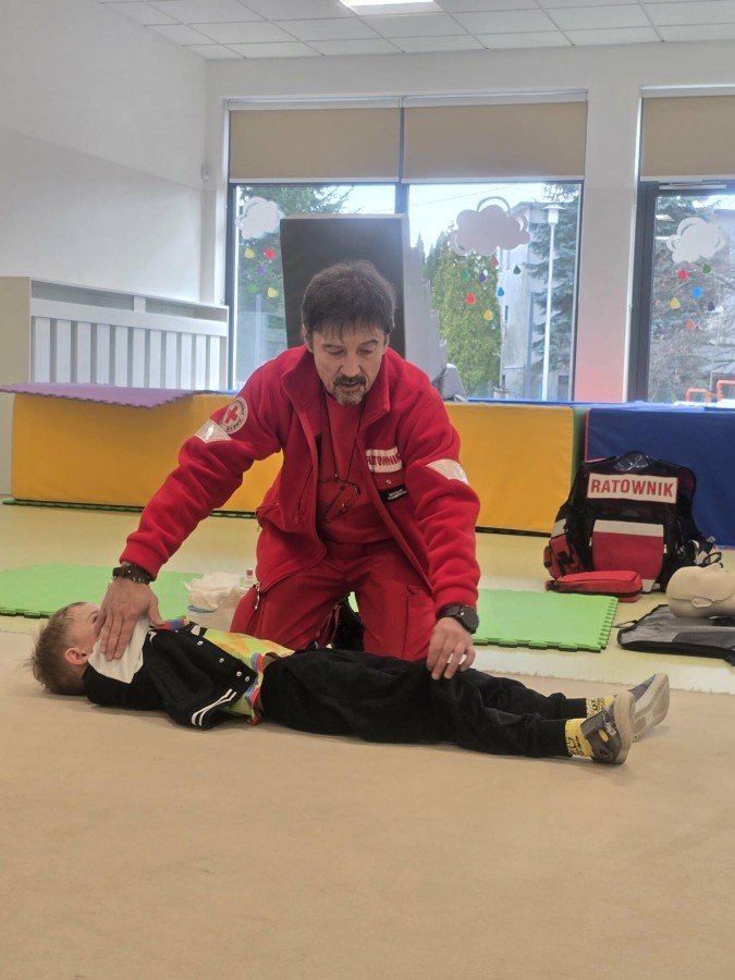 Nasze przedszkole odwiedzili wyjątkowi goście – ratownicy medyczni Polskiego Czerwonego Krzyża, którzy przeprowadzili zajęcia ze starszymi grupami. Dzieci dowiedziały się, jak udzielać pierwszej pomocy, poznały również podstawowe zasady bezpieczeństwa.