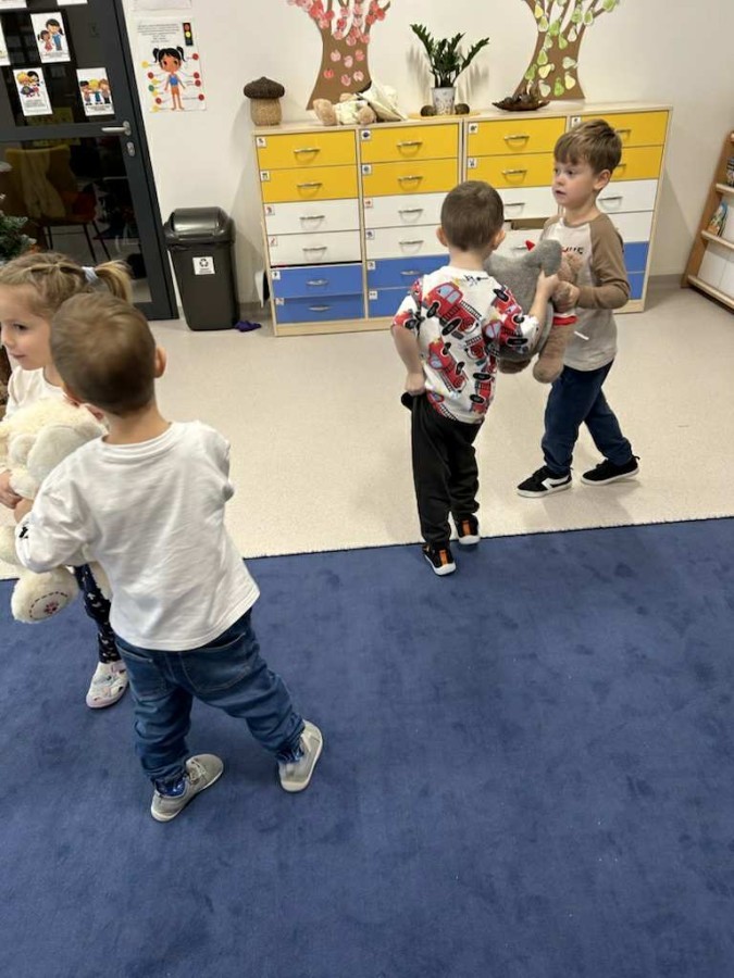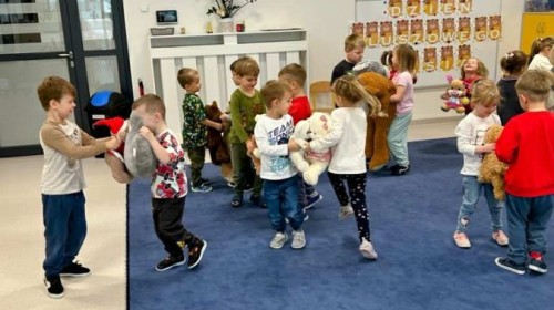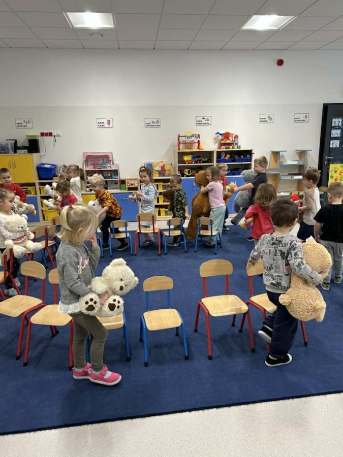 Młodsze grupy świętowały ten wyjątkowy dzień w przedszkolnych salach, podczas wspólnych zabaw, konkursów i tańców. Dzieci poznały historię Pluszowego Misia, przyniosły swoje ulubione maskotki do przedszkola, do którego przybył również wyjątkowy gość