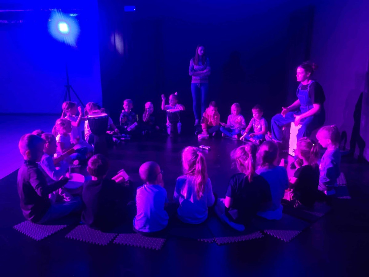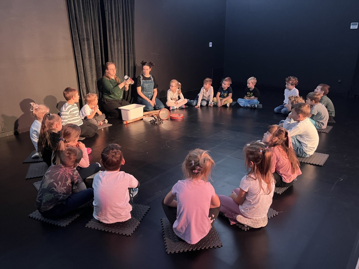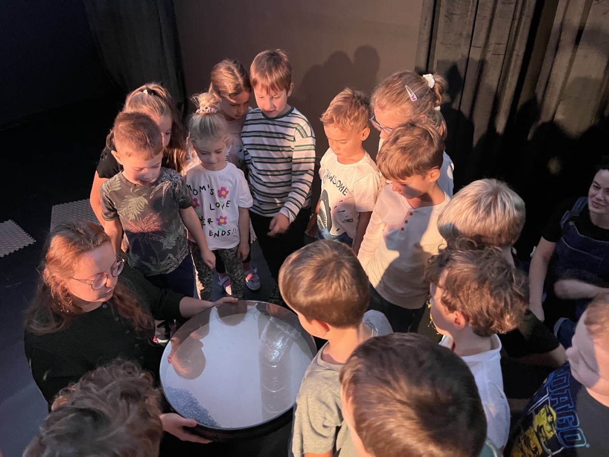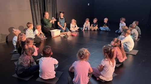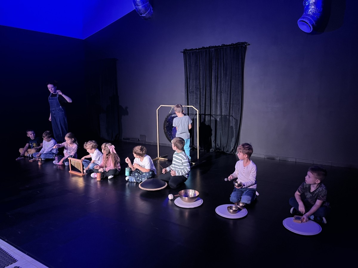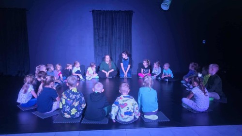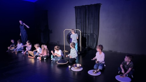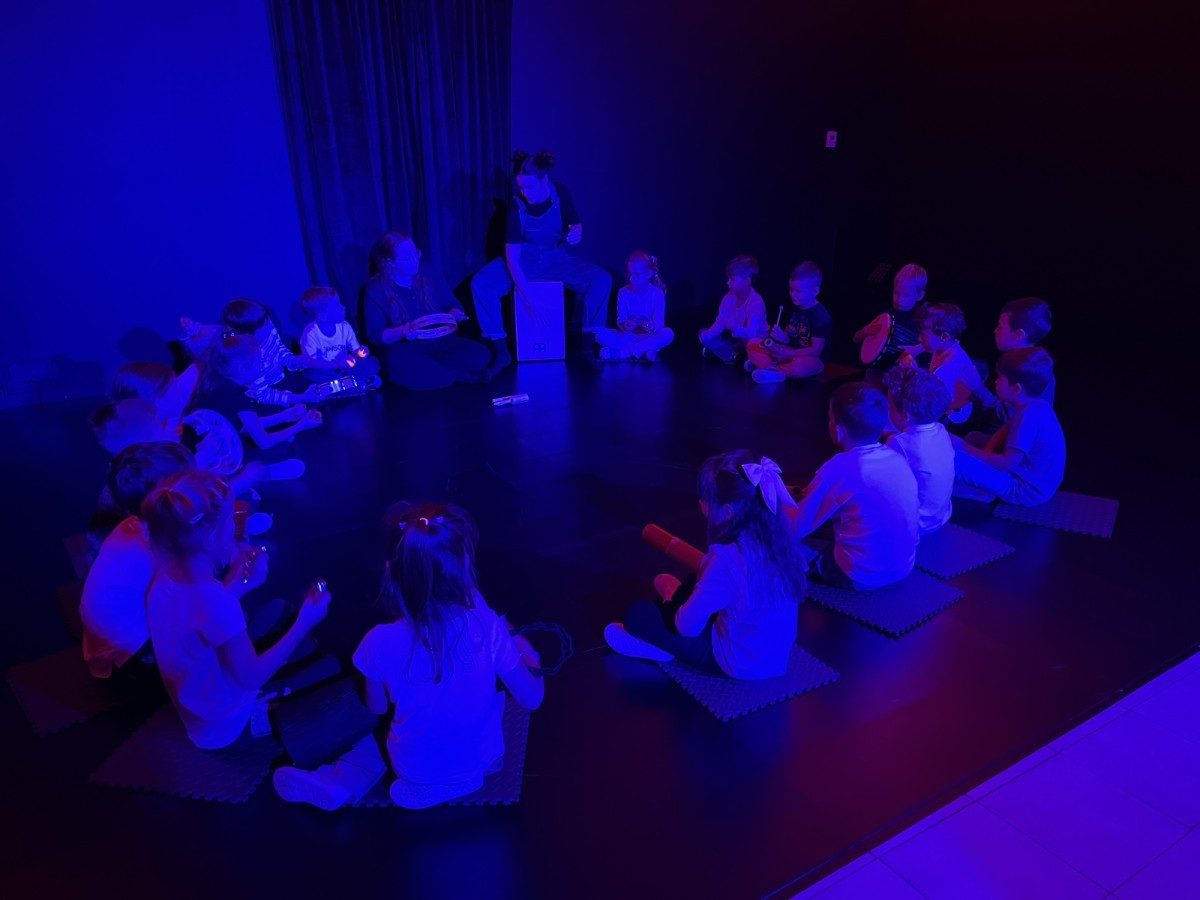 teatralno-muzycznych pt. "Muzyka w teatrze", organizowanych przez Teatr Fabryka w Bielskim Stowarzyszeniu Artystycznym "Teatr Grodzki". Dzięki prowadzącym warsztaty - pani Aleksandrze oraz pani Natalii, dzieci doświadczały muzyki na żywo poprzez aktywne uczestnictwo w zajęciach, poznały wiele nowych, na co dzień niespotykanych instrumentów. Przedszkolaki usłyszały ciekawostki związane z realizacją muzycznych i teatralnych przedsięwzięć, miały okazję do twórczej zabawy, improwizacji i wyrażania siebie poprzez dźwięk i ruch.