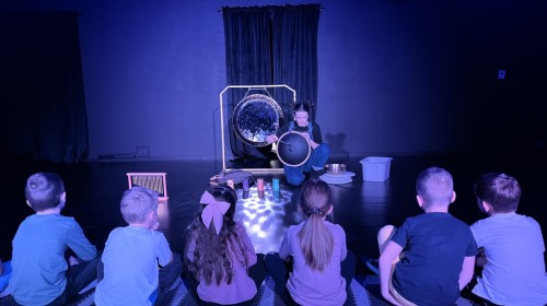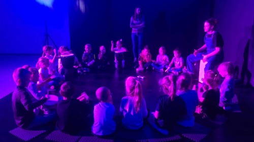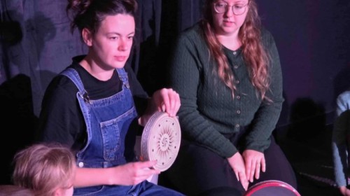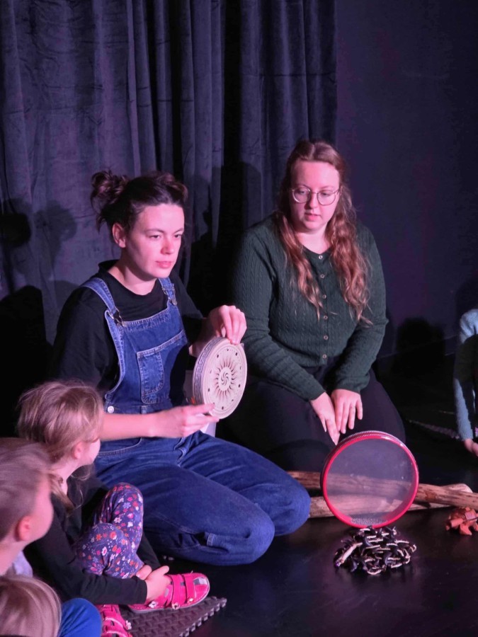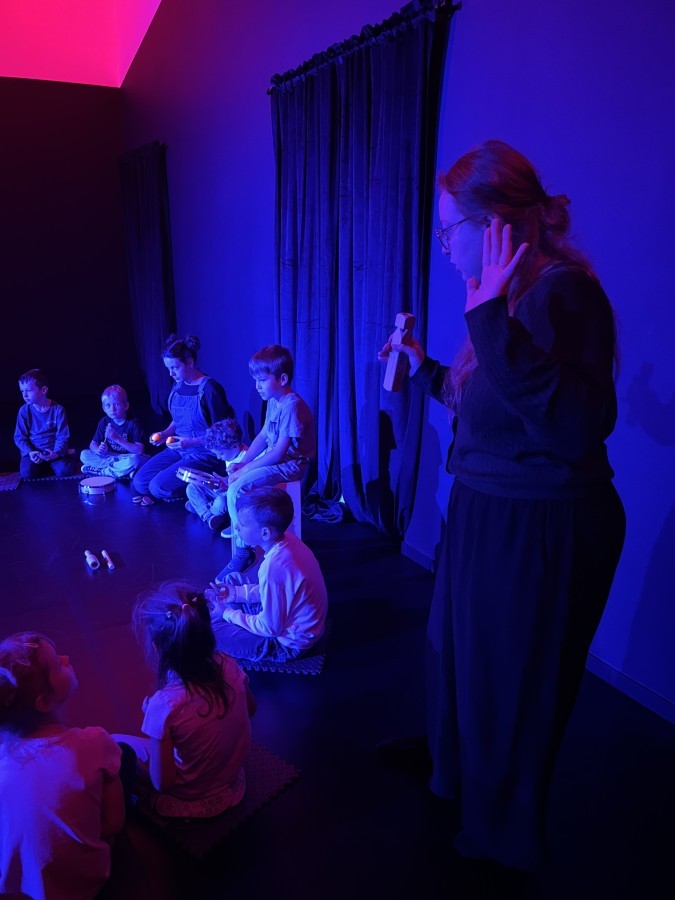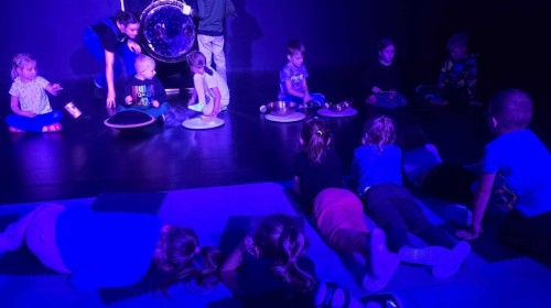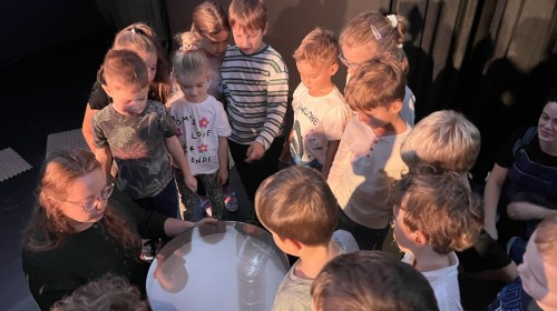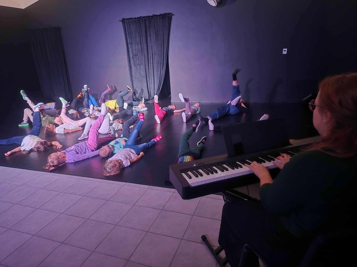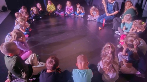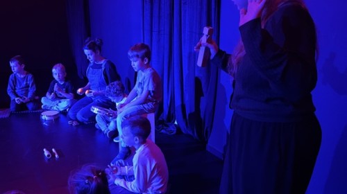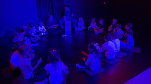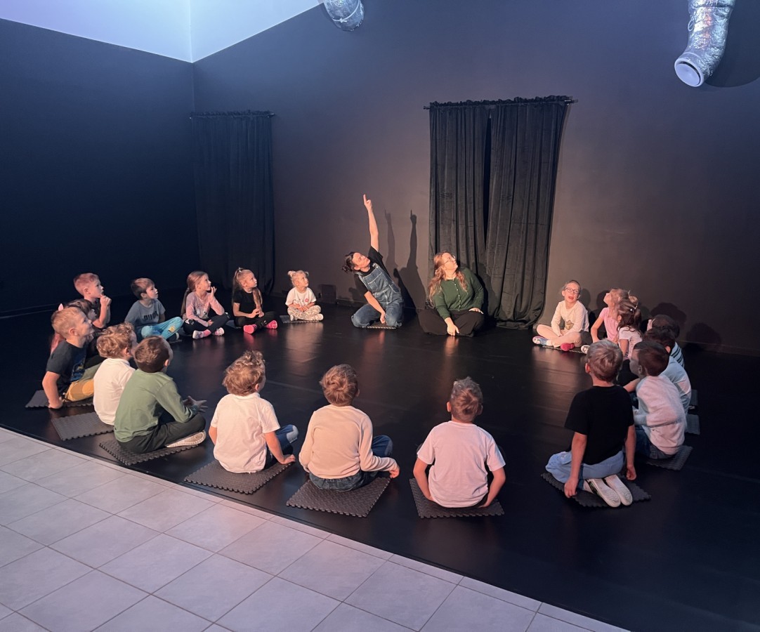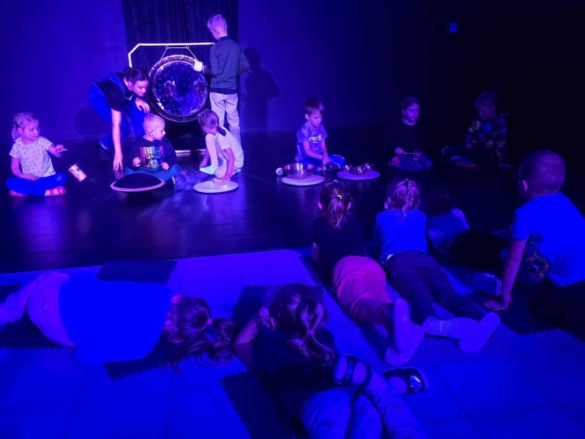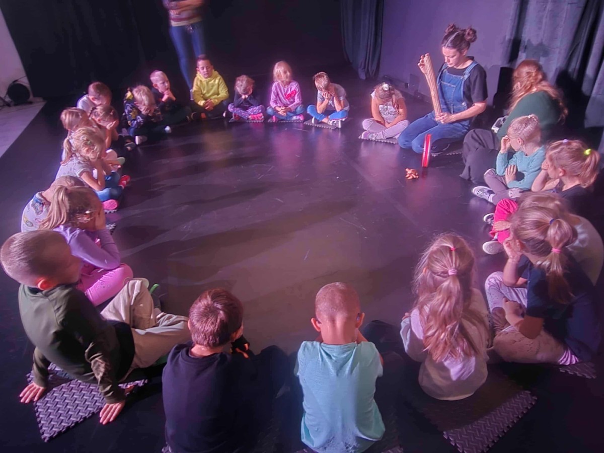 teatralno-muzycznych pt. "Muzyka w teatrze", organizowanych przez Teatr Fabryka w Bielskim Stowarzyszeniu Artystycznym "Teatr Grodzki". Dzięki prowadzącym warsztaty - pani Aleksandrze oraz pani Natalii, dzieci doświadczały muzyki na żywo poprzez aktywne uczestnictwo w zajęciach, poznały wiele nowych, na co dzień niespotykanych instrumentów. Przedszkolaki usłyszały ciekawostki związane z realizacją muzycznych i teatralnych przedsięwzięć, miały okazję do twórczej zabawy, improwizacji i wyrażania siebie poprzez dźwięk i ruch.